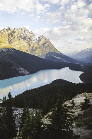 Golden hour along the mountains of Peyto Lake, one of my favorite shaped lakes in Alberta, Canada. Reminds me of a wolf!