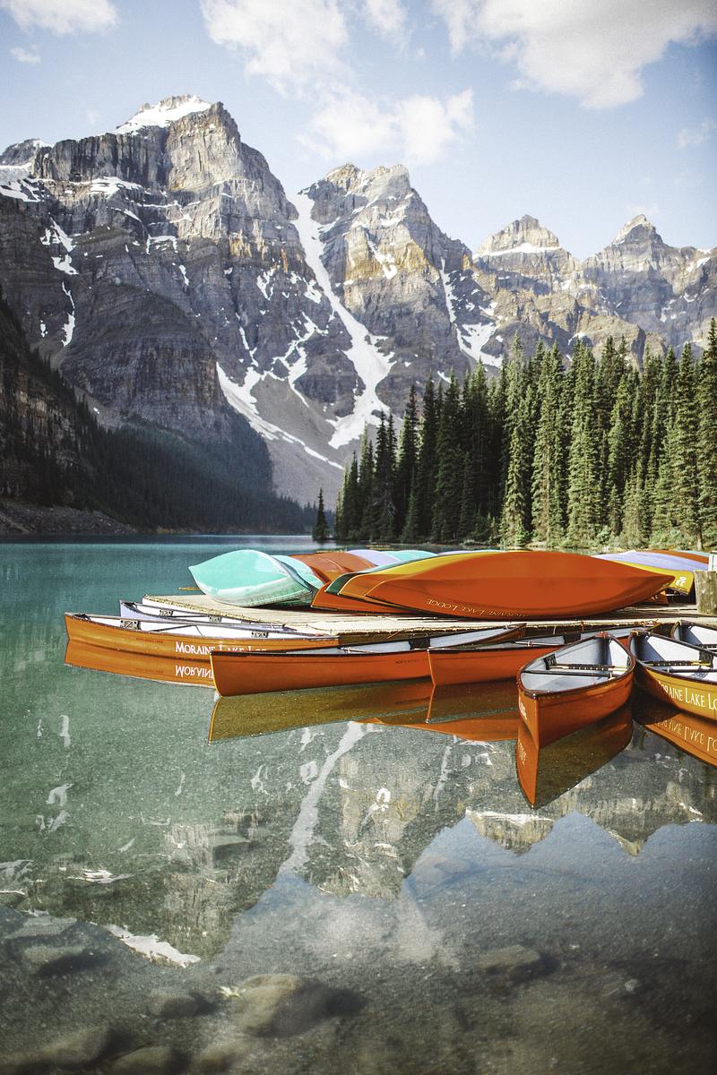 Rainbow Canoes on Lake Moraine