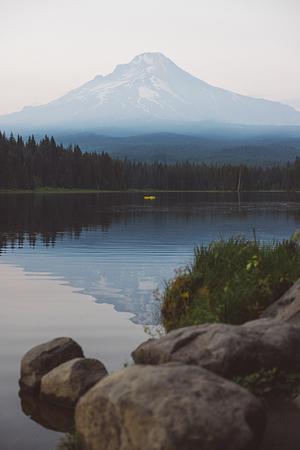 The yellow kayak went right in front of Mount Hood and made for such a beautiful shot of Trillium Lake :')