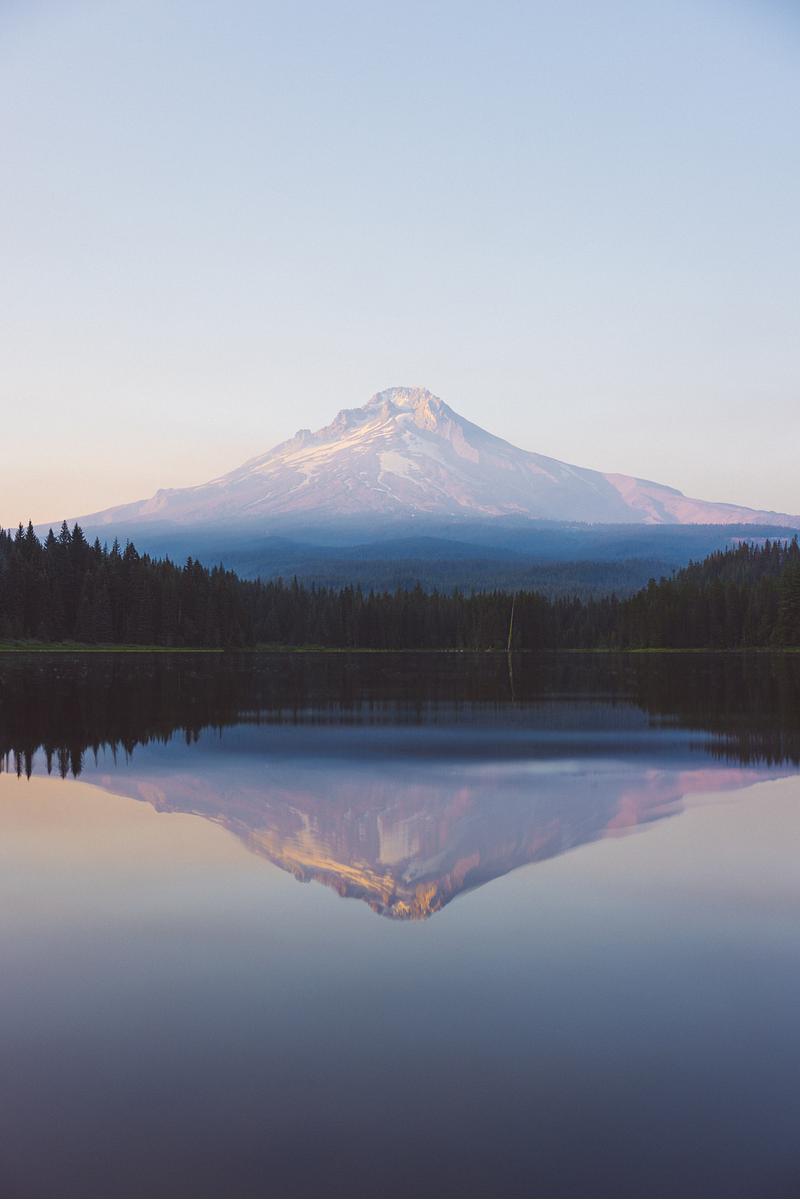 Mount Hood lit up in purple hues as the sun had set in the warm summer evening.